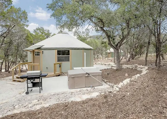 Spacious Luxury Yurt-Cabin Retreat With Private Hot Tubs And Outdoor Entertainment Near Canyon Lake, Tx